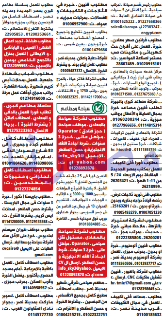 مطلوب للعمل الوظائف الاتية و هى مهندسين طباعة و مهندسين